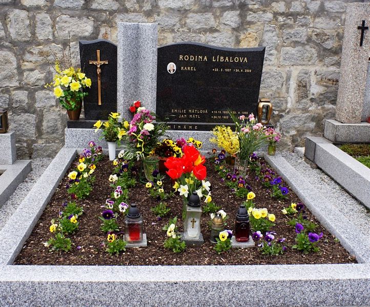 Nebo také jenom vyčistíme nápisovou a krycí desku hrobu a doplníme barvu do písma. Můžeme při opravě hrobu také napevno přidělat na hrob novou vázu, svítilnu nebo jinou část hřbitovních doplňků.