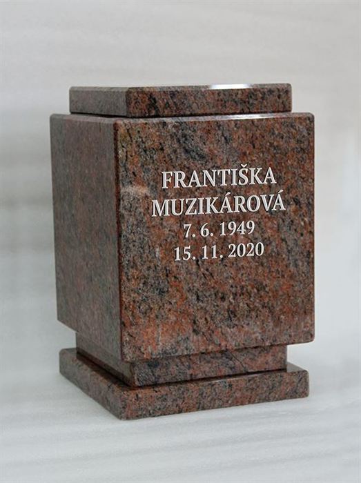 Kámen je stále moderní přírodní materiál a stále více lidí mu dává přednost, a tak je tomu i u uren, urnových obalů. Stále víc našich zákazníků chce námi vyrobené hranaté urny, urnové obaly, které mohou být bez nápisů anebo i se zlacenými nápisy nebo gravírovanými obrázky. Prohlédněte si hranaté a kulaté kamenné urny a jejich barevné varianty v nabídce našeho e-shopu ZDE: