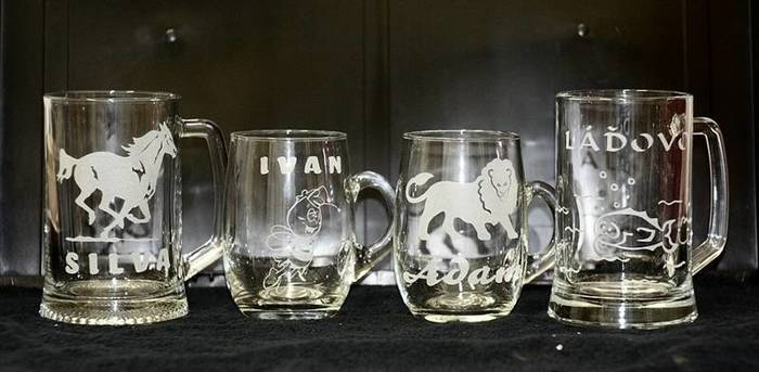 Úvod > Kamenické práce > Kamenné kuchyňské desky > Kuchyňské doplňky > Gravírované sklo a porcelán